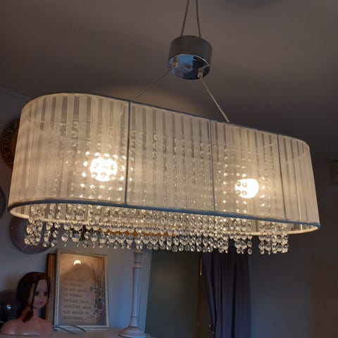 Varjostin kaikkine hapsuineen noin 55 cm korkea ja 40 cm leveä.