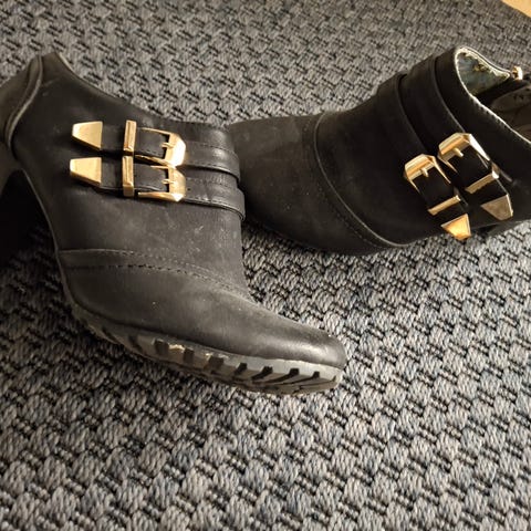 Hyväkuntoiset, mukavat korkonilkkurit mukavilla tolppakoroilla, koron korkeus vajaa 10cm. Pientä puhdistusta vailla.