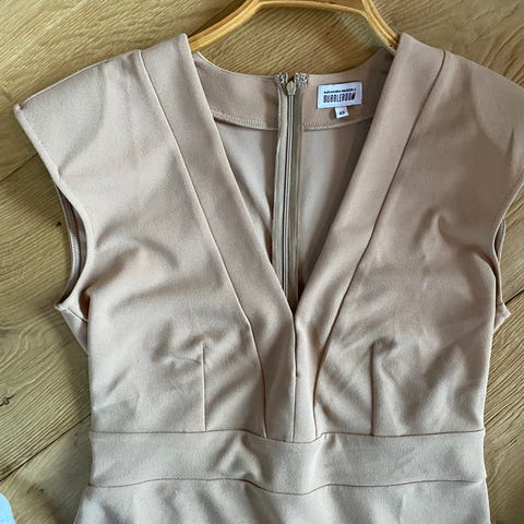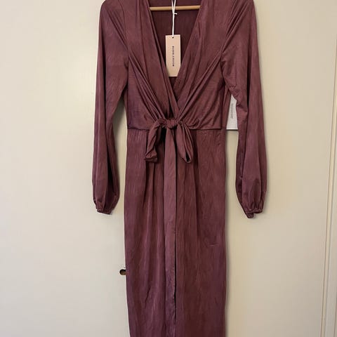 Salvian värinen Bubbleroomin juhlamekko liehuvilla hihoilla. Koko: 40. Sivussa vetoketju ja vyön voi solmia haluamaansa kohtaan.