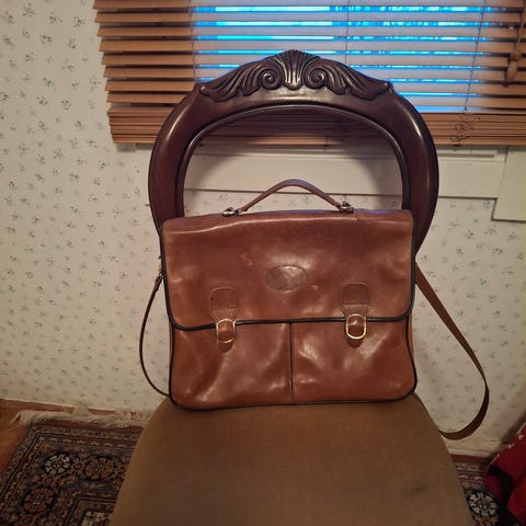 Nahkainen salkku olkahihnalla