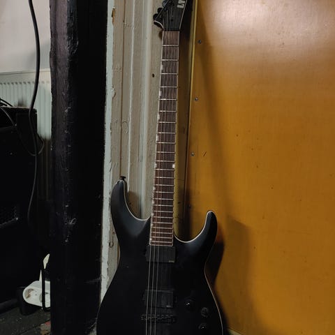 Upea käsityönä Japanissa 2017 valmistunut ESP - E-II Horizon NT-7B Baritone sähkökitara alkuperäisellä kovalla laukulla. Kitara on siistissä kunnossa ja tekniikka toimii niinkuin pitääkin. Nauhat kunnossa ja kulutuspintaa reilusti. Bodyn takapuolella kevyt naarmu, ja kevyttä kulumaa näkyvissä maalipinnassa, mutta ei mitään maittavaa.