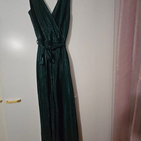 Kaunis ruskea valkea jumpsuit, pitkät hihat, puuvillaa