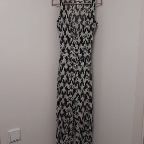 Kaunis ruskea- valkea jumpsuit, pitkät hihat, tukevaa puuvillaa