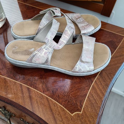 Kohtalaisessa kunnossa mutta ehjät Reino sandaalit/pistokkaat. Koko 37. Kantaosa vähän kulahtanut.