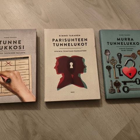 Kattavat teokset omien tunnelukkojen korjaamiseksi, ymmärtämiseksi tai edes tiedostamaan niiden olemassaolon. Samalla ymmärrystä lapsenkasvatukseen jottei ymmärtämättömyyttään loisi lapsellensa aikuisiän ongelmia jo tässä vaiheessa. Kuvassa olevat meni ja jäljellä vain tuo kolmas jonka kuvan hukkasin ja pitäis ottaa uusi kun muistaisin.Nouto Raisio/postitus 7e