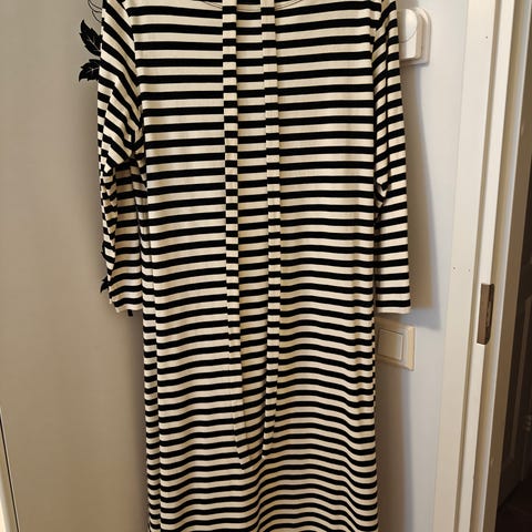 Hyväkuntoinen trikoomekko, kerran pidetty ja pesty. Kai - kai 48 cm ja niska - helma 104 cm.