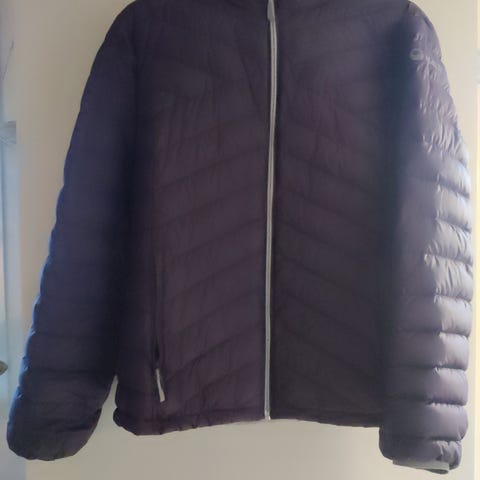 Haltin musta naisten kevyt toppatakki koko 42. Takissa on vetoketjukiinnitys sekä huppu. Sen pituus takaa mitattuna n. 89cm.
