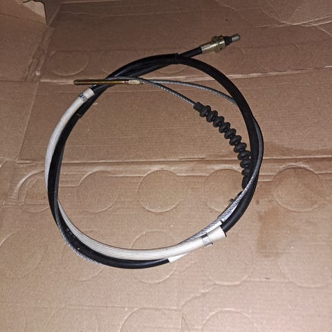 B110 Datsunin takimmainen käsijarruvaijeri. Harrastajalle helposti hyllyyn.