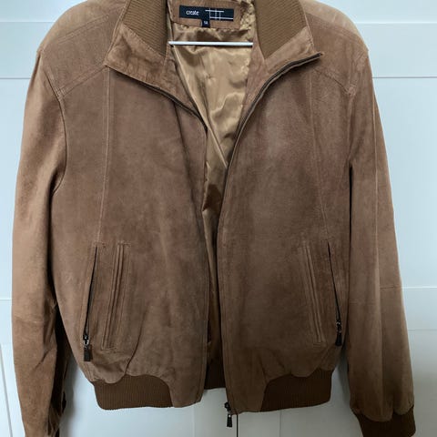 Juuri pesulasta haettu mokkatakki, unisex malli, koko M