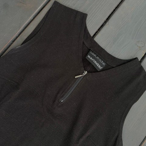 Marimekon Marjalla Raspa-kuosinen, mustan ja luonnonvalkoisen sävyinen mekko puuvillatrikoota, koko S. Pyöreä pääntie, 1/4-pituiset hihat, sivusaumataskut, suora leikkaus puoleen väliin reittä ulottuvaan helmaan, valmistettu Eestissä. Pituus takaa kauluksešta helmaan 86 cm, hiha olalta 38 cm, kainalosta 27 cm. Mekko on saatu lahjaksi, mutta sitä ei ole käytetty kertaakaan (Marimekon pahvilappu roikkuu niskan Marimekkobrändissä), joten mielestäni mekko on uusi. Nouto tai postitus pakettina postilaatikkoon € 6,90. Maksu käteisellä tai tilille. HUOM. EN LÄHETÄ mekkoa TORIDIILILLÄ EIKÄ minulla OLE MOBILE PAYTA.
