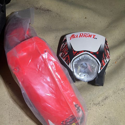 Musta valomaski valolla, sopii Derbiin tai Yamahan. Mukana musta kumisukka. Valossa ei ruostetta!