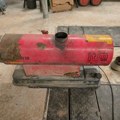 Joutilaaksi jäänyt hallilämmitin.teho 20 kW, Diesel käyttöinen.