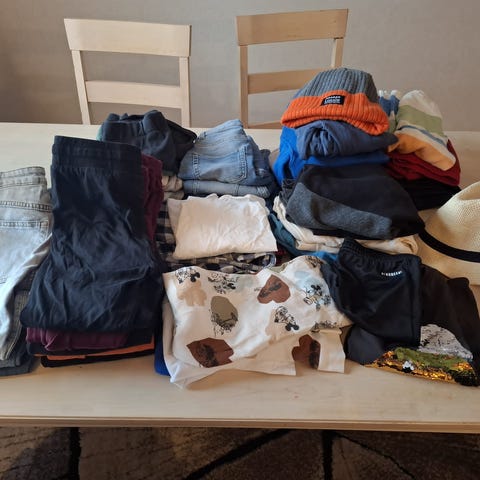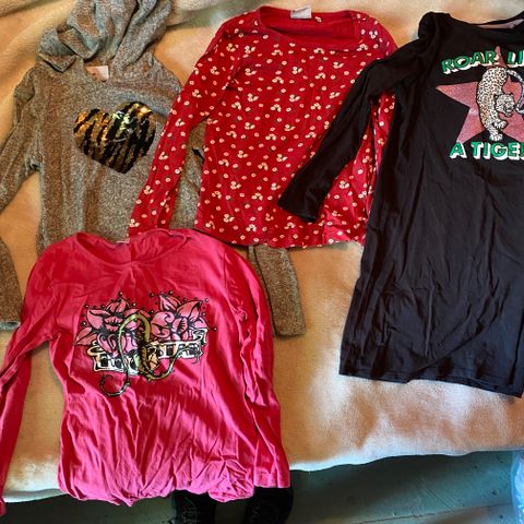 120-134cm vaatteita: 5kpl alushousuja,1villasukat,4kpl housuja,5kpl paitoja,6kplsortsit/boxerit,5kpl t-paitoja, 2kpl gollegepaitoja,Reimaulkoilupuku, ulkoiluhaalari,34 kumpparit,34 lenkkarit.En kuvaile/varaile nopeimmalle kaupat