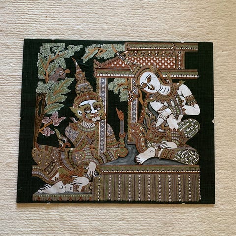 Maalaus ostettu 1980 luvulla Sri Lankassa.