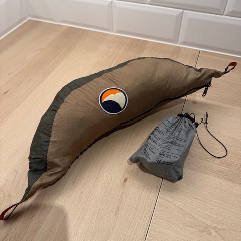 Expedin huippulaadukas Ergo Hammock -riippumatto, jossa valmiina hyttysverkko sekä makuuosa tuplakankaasta, jolloin voit helposti laittaa myös makuualustan väliopohjaan tuomaan ryhtiä ja eristystä. Riippumaton molemmissa päissä on erityisen vahvat karabiinihaat, joilla riippumatto kiinnitetään esimerkiksi treehuggerien tai narujen kanssa puihin. Pakkauksessa mukana yksi kiinnitysnaru ja treehugger, joilla saat nopeasti korkeutta säädettyä. Toiseen päähän tarvitsee kuitenkin hankkia itse narut/treehuggerit ellei toista päätä saa suoraan karabiinihaalla johonkin kiinni.
