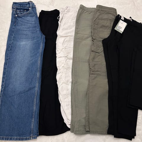 Housupakettiin kuuluu McKinley toppahousut (polvissa vähän kulumaa) koko 140cm, kahdet Ciraf välikausihousut koko 134 (toisen polvessa ommeltu heijastinpaikka), gollegehousut koko 134 sekä kahdet legginsit 134/140cm.