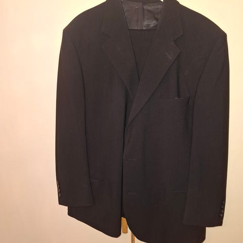 Liituraita, takissa ei kokomerkintää. Kai-kai 50 cm. Hartiat 46 cm. Olka- helma 66 cm. Housut merkintä 32/32. Vyötärö 2x42 cm. Vyötärö-lahkeensuu 100 cm. Tuusila,Jokela,kissakoti,mmm