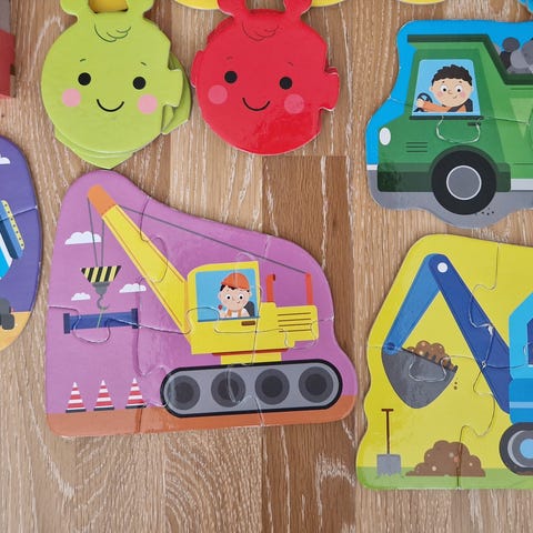 Ensipeli-palapeli (kaikki palat tallella) ja 4 kpl maalaa vedellä -alustoja