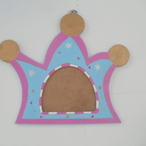 Myydään sininen seinäkoukku, jossa on prinssi-kuvio ja kruunun muoto. Koukun voi kiinnittää seinään kahden ruuvin/kynnen avulla, joten se pysyy tukevasti paikallaan.