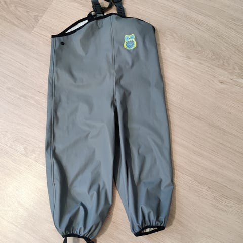 Myydään Lasten sadehousut harmaassa värissä, koko 98. Unisex-malli, sopii sekä tytöille että pojille. Housuissa on säädettävät olkaimet ja ne on varustettu heijastavilla yksityiskohdilla näkyvyyden parantamiseksi. Sisäpuolella on pehmeä vuori, joka lisää käyttömukavuutta. Myynnissä myös työn takki joka sopii housuihin.