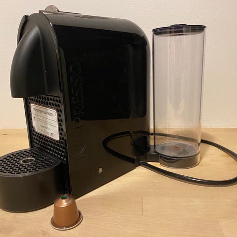 Pari vuotta sitten hankittu Nespresson kahvikone. Vähällä käytöllä ollut ja toimii moitteetta. Vesisäiliön kansi puuttuu, mutta ei vaikuta käyttöön millään tavalla. Nouto Kuopiosta.