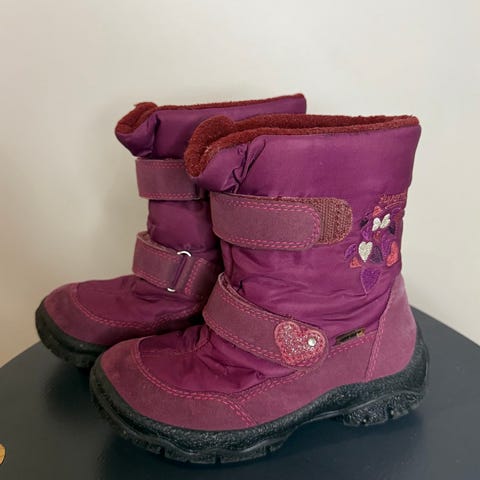 Superfit lasten talvikengät, koko 26. Kunto muuten hyvä, mutta kärjet kuluneet.
