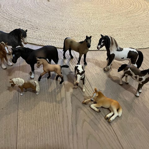 Schleich hevosenmuovifiguurit, yhteensä 8 kappaletta. Figuurit ovat eri kokoisia ja eri värisiä, valmistettu kestävästä muovista. Tuotteet sopivat keräilyyn tai lasten leikkeihin. Valmistettu Saksassa. Nämä ovat erittäin uuden kuntoiset keräily hevoset, jopa joululahjaksi. Hinnasta voi kysyä vielä! Kysy ihmeessä jos kiinnostaa ennen kun nämä ihanat hevoset menee myyntiin :) KPL HINTA 12€