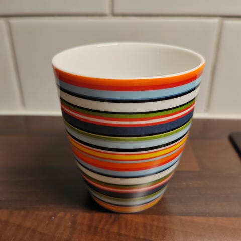Origo mukit,olleet satunnaisessa käytössä. Yleisilme kuitenkin siisti eikä sisällä tummentumia.Hinta neljälle kupille.