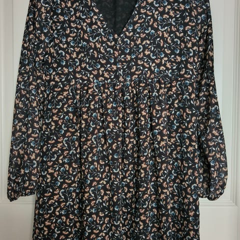Myyn ruskea-kukallisen Marks & Spencerin hihattoman mekon. Käytetty 2 kertaa. Pituus olalta 116cm ja kai-kai 46 cm. Tarjoa.
