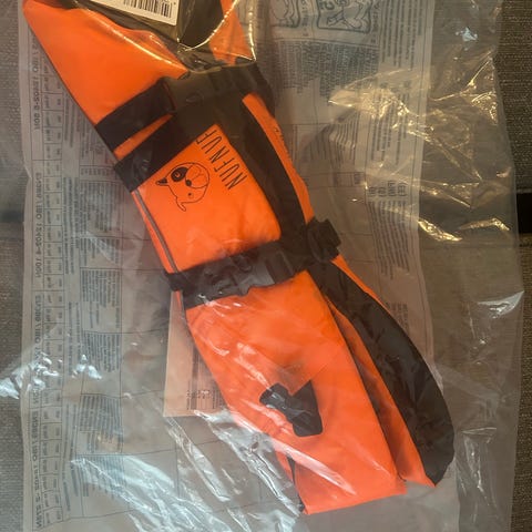Myydään kuvan mukainen kellunta-/pelastusliivi koiralle. Kokosuositus 30-36. Kahvassa puremajälkiä mutta ei vaikuta kelluvuuteen eikä estä kahvan käyttöä, kangas on vahvaa. Vatsapuolella tarrojen lisäksi lukot. Katso kuvat.