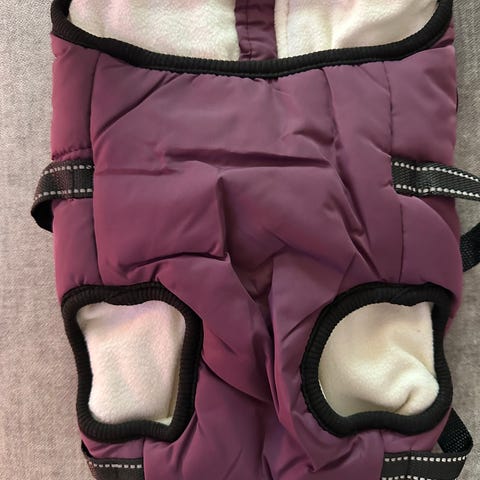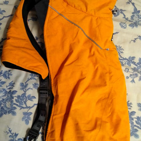 Vaaleanpunainen New Pets Fashion talvitakki, jossa itsessään kiinni valjaat. Pienelle koiralle. Koko XL, eli selän pituus 36cm, rintakehän ympärys (ali) 53cm ja kaulan ympärys 35cm.