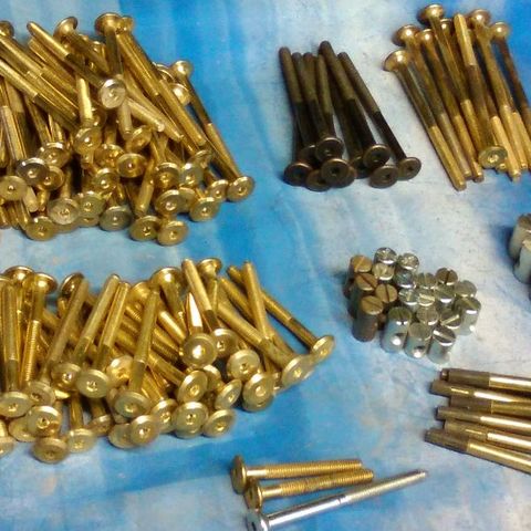 Vanhanaikaisia puuruuveja vanhojen kalusteiden korjauksiin ja entisöintiin. Kaikki ruuvit lattakärki / urakärki. Pituuksia 12 mm, 16 mm, 20 mm, 25 mm, 30 mm ja 40 mm, sekä uppokantaisia että pallokantaisia. Ruuvien paksuuksia näkyy kuvissa, ja löytynee muitakin kokoja. Rasioissa on hintalaput 1960-1970 luvun markka-ajalta. Rasioissa keskimäärin 20 kpl (pienissä noin 20, isommissa alle 20 kpl). Rasioita tarjolla noin 200 kpl. Yksittäisen rasian. Hinta 1,50 eur, postikuluja kertyy pienestäkin määrästä pakettikulu 6,90 eur (lisätään sovittuun ostomäärään ).