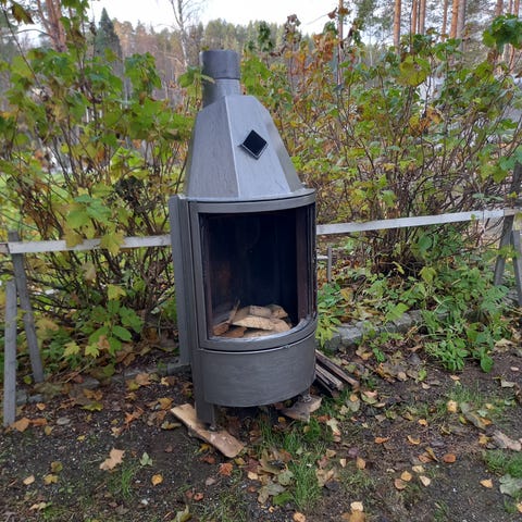 Puukiuas vesisäiliöllä ulkosaunaan.