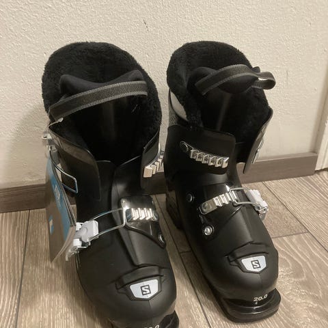 Naarmuiset mutta täysin ehjät ja hyvin toimivat Salomon Team lasten laskettelumonot.