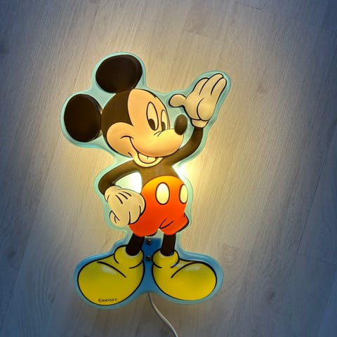 Iso vanha, toimiva mikki valaisin seinälle, korkeus 46cm,leveys 25cm.