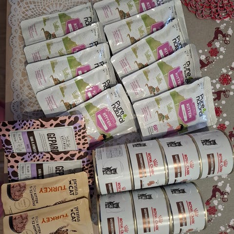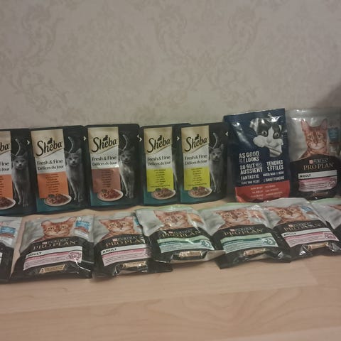 Whiskas 1+ märkäruokia. Kaksi avaamatonta laatikkoa (40pss + 40pss), parasta ennen 02/2027: Suosikit lajitelma hyytelössä, eli härkä, kana, lohi ja tonnikala. Irtopusseja (32pss), parasta ennen 03 tai 05/2027: Hyytelössä härkä 3pss, kana 12pss, lohi 5pss ja tonnikala 2pss, lammas 5pss ja siipikarja 5pss.