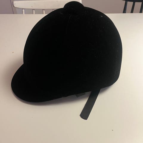 CRW ratsastuskypärä mustalla värillä ja koko S 53-55. Kypärässä on kiinnityshihna ja tuuletusaukot edessä ja takana.