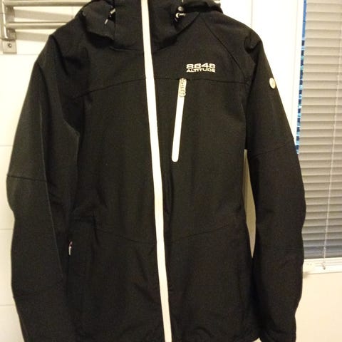 Takin koko on 40 ja väritys musta-vihreä. Kainaloissa vetoketjulliset tuuletusaukot. Hihoissa taskuja ja takin alaselän kohdalla lumilukko.