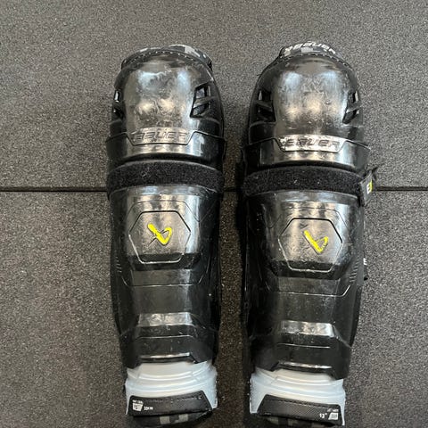 Bauer Supreme jääkiekon polvisuojat valkoisena. Suunniteltu tarjoamaan suojaa jääkiekkoilijoille. Koko 8 20 cm.