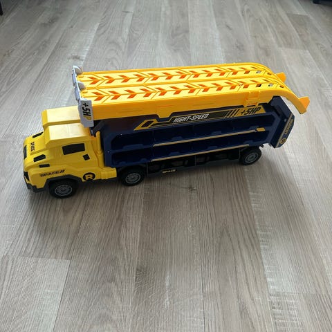 Myydään piston cup -lelu ja siihen kiinnittyvä rekka. Muoviosat hyväkuntoiset, joissain tarroissa näkyy käytön jälkiä. Rekan saa tuosta rakennuksesta irti.