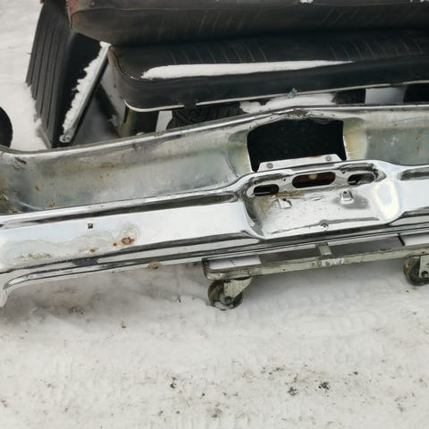”Custom” kromatut takapuskurit Pickuppiin tai maasturiin, vankkaa metallia, upeat Custom osat. 2 kpl. Hp. yht. 120,-