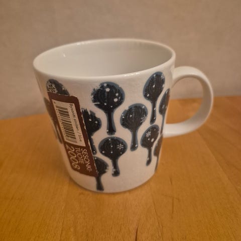 Teema-pohjainen sesonkimuki sinisillä kuvioilla. Mukeja 3kpl, hinta 25eur/kpl.