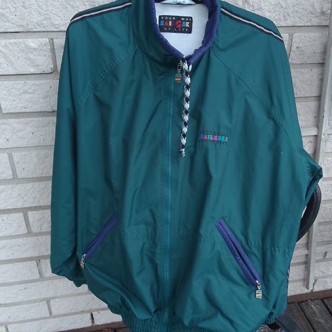 Sail Ski takki. Hihansuiden heijastimet kuluneet. Muutoin siisti ja ehyt takki. Väri turkoosi ja liila.