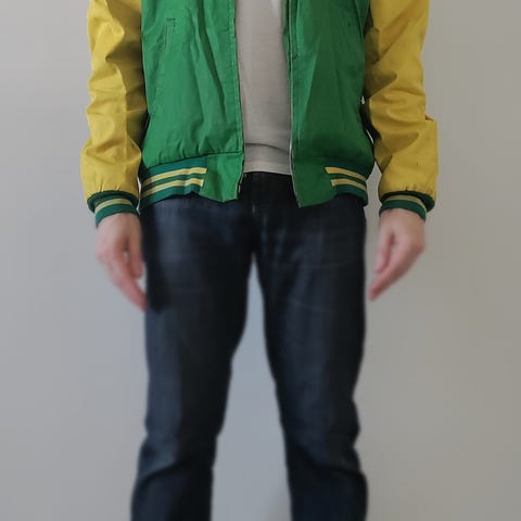 Siinä on korkea pystykaulus, täyspitkä vetoketju ja kaksi vetoketjullista sivutaskua. Helmassa pieni, alkuperäinen "kipi club" -merkki.