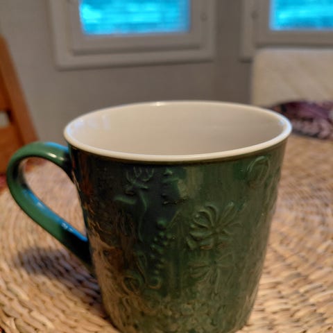 Waechtersbach teemuki keraamisella sihdillä ja kannella. Kokonaisuuden korkeus 12cm ja halkaisija 9 cm. Kupin vetoisuus 4 dl.