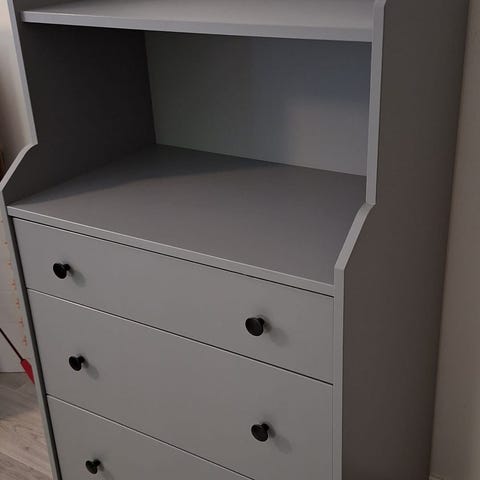 Ikean hauga lipasto, taso reunasta hieman rikki mutta ei oo itsellä ainakaan haitannut käyttöä. Nouto Martista, omat kantajat mukaan.