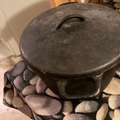 Juuri puhdistetut ja rasvapoltetut valurauta pannut 23cm ja 27cm, kummassakin kaatonokat.