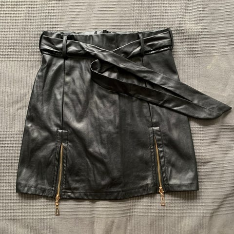 A-linjainen musta juhlahame. Näyttävä. Edessä tekonapit/halkio. Joustovyötärö. Koko M, saattaa mennä myös L koolle.