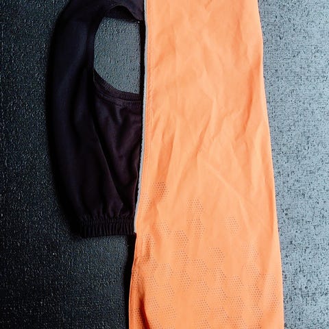 Vedenpitävä ja ohut pomppa tyylinen takki/paita/ loimi. Selkä vedenpitävää ja joustavaa Feel Tech -materiaalia, mahan alunen joustavaa trikoota. Erittäin joustavaa materiaalia, mutta on melkonapakkaa kokoa. Oranssi väri ja heijastavat kuvioinnit, joten toimii myös huomioliivinä.