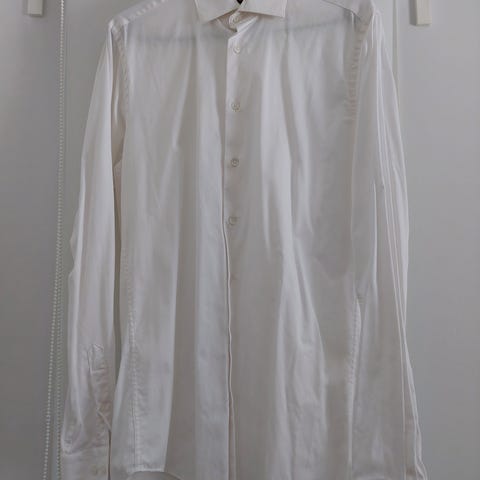 Valkoinen Dressmannista hankittu kauluspaita kokoa M 39/40 x-long slim fit eli istuvampi malli tavallista pidemmillä hihoilla ja helmalla. Erittäin hyväkuntoinen. Vain muutamia kertoja pidetty. Materiaali premium cotton elastaani.